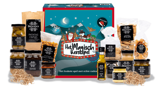 Deze feestelijke box, versierd met een sfeervolle kerstprint, zit boordevol heerlijkheden. Geniet naast Het Magisch kerstspel, van 9 voortreffelijke producten van Delicious – de proeverij, elk met liefde samengesteld. Het krabkrul vulmateriaal voegt een speelse touch toe aan de feestelijke presentatie. Een kerstpakket vol genot en smaakvolle verrassingen!